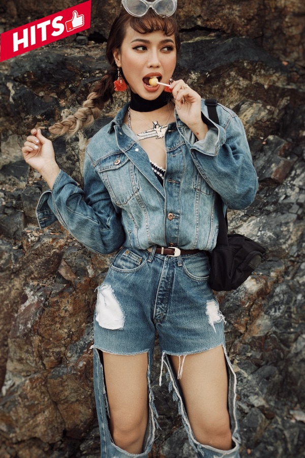 Diệu Nhi khiến bảng phong thần thời trang tuần qua phong phú hơn với hình ảnh cá tính cùng xu hướng denim-on-denim. Quan trọng hơn chiếc quần jeans với 2 “ô cửa sổ” khiến cô nàng trở thành tín đồ đón đầu xu hướng cùng mốt quần độc đáo này.