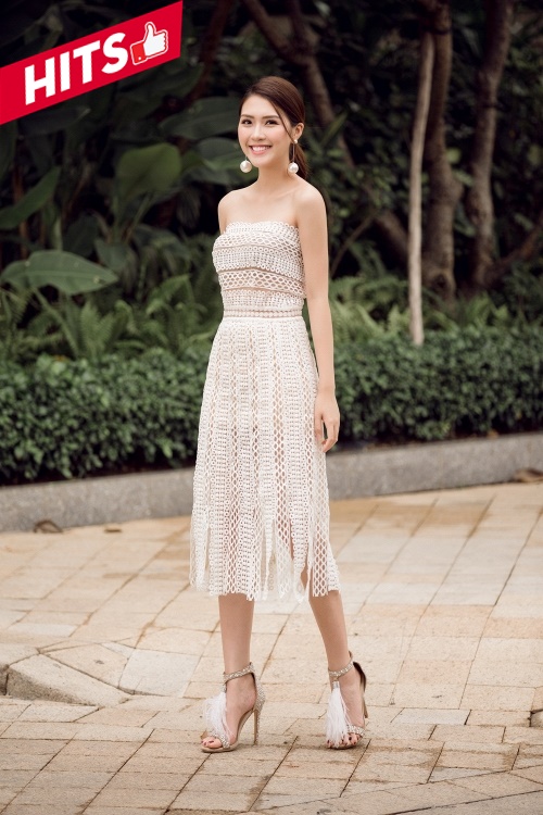 “Hoa hậu” The Face - Tường Linh đẹp tinh khôi trong thiết kế váy trắng xuyên thấu. Cô chọn giày cao gót giúp tôn dáng và tông xuyệt tông cùng trang phục nhằm thể hiện vẻ nữ tính của mình. Với tổng thể diện mạo này, Tường Linh hứa hẹn là một trong những nhân tố tạo nên nhiều điều thú vị tại đường đua Gương mặt thương hiệu năm nay.