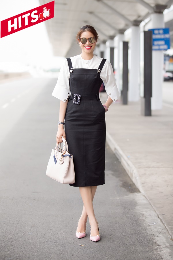 Phạm Hương xuất hiện ở sân bay với set đồ trẻ trung, cô không quên tạo nên sự chỉn chu bằng chiếc túi hiệu Dior màu hồng mỗi lần đi công tác.