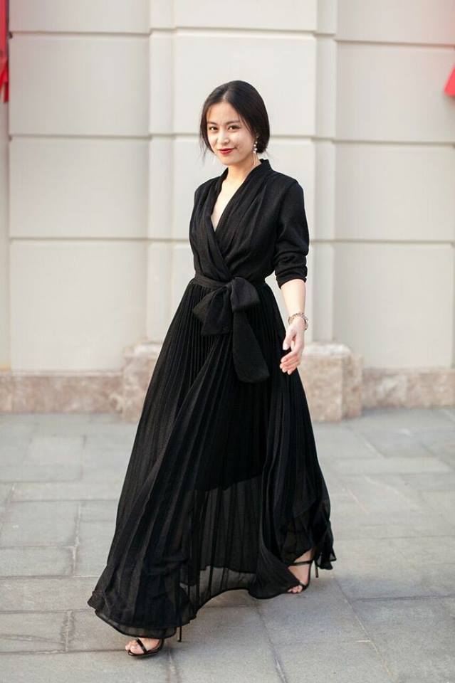 Giọng ca “Bánh trôi nước” hóa cô nàng ma mị, quyến rũ trong chiếc đầm đen dài, thắt eo.