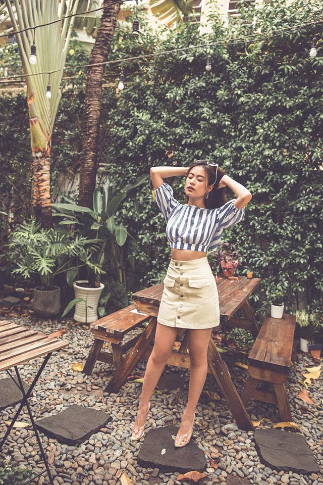 Bên cạnh đó, “combo” áp crop-top kết hợp chân váy giúp người đẹp lung linh trong mọi hoàn cảnh.