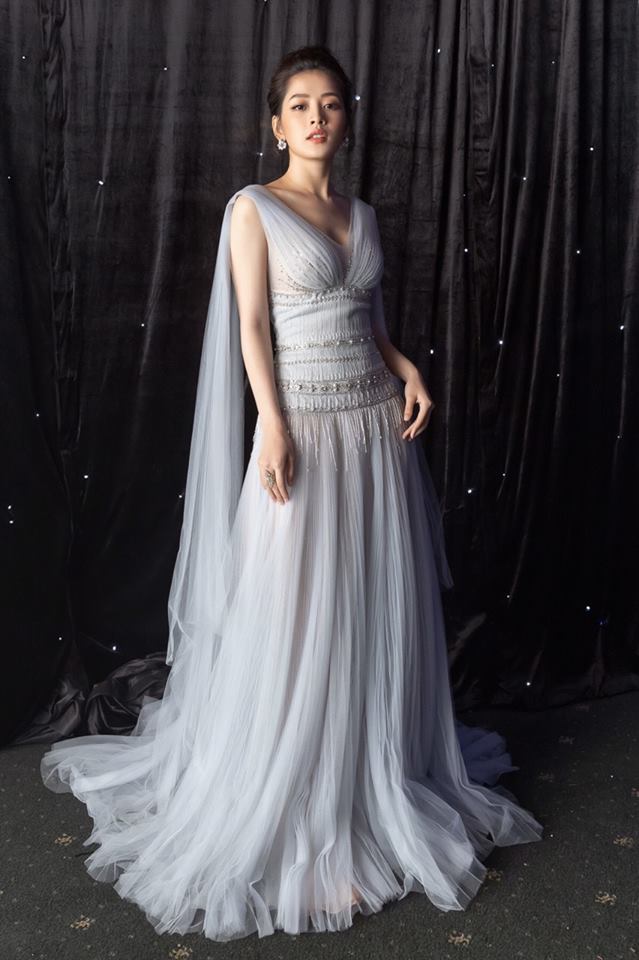 Ngoài bộ cánh gợi cảm, Ngọc Diễm còn khoe dáng với chiếc váy voan xếp li, có phần tà nhẹ nhàng.