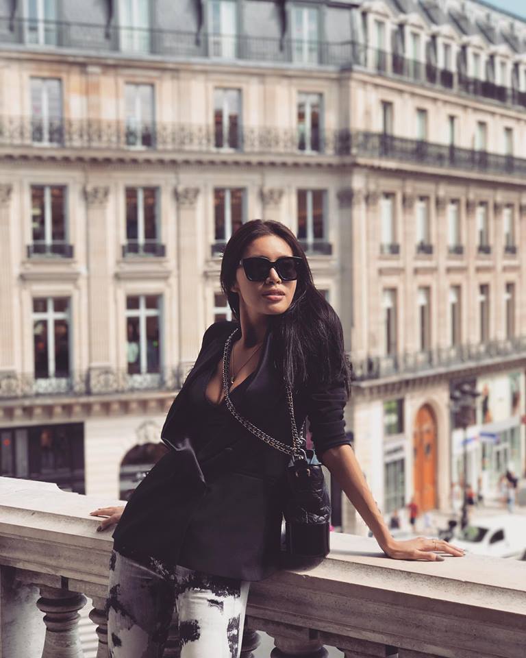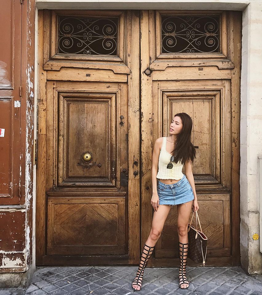 Ngoài mẫu túi hiệu Chanel, Minh Tú còn diện túi của thương hiệu Louis Vuitton trong chuyến công tác của cô tại Pháp: