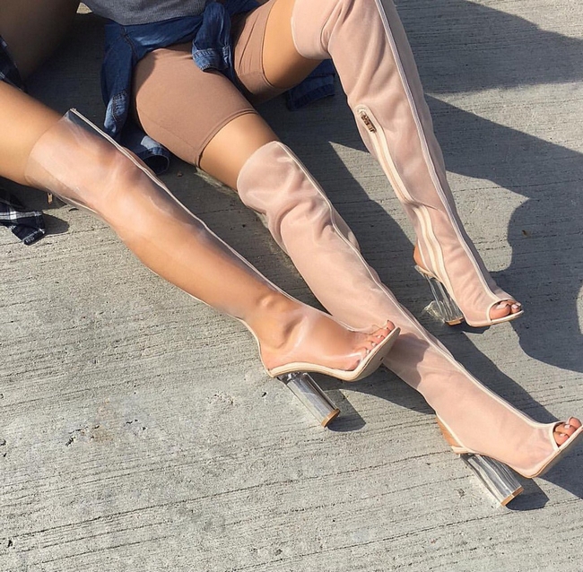 Có thể thấy đôi boots trong suốt này được ba chị em Kylie Jenner- Kim Kardashian - Kendall Jenner tích cực lăng xê.