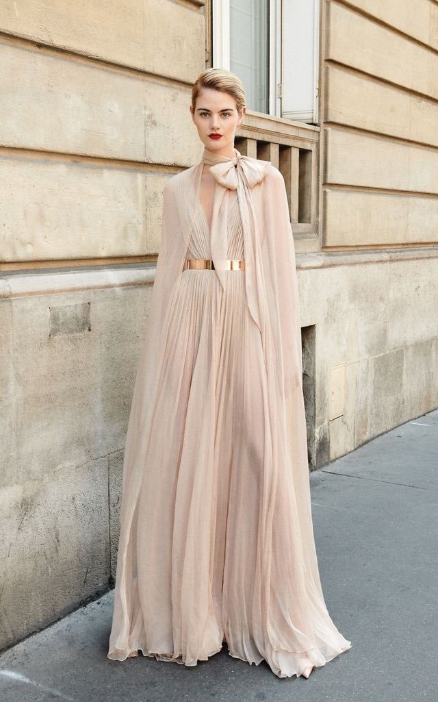 Ivanka Trump đã trở thành tâm điểm của dàn khách mời trong ngày đám cưới hôm đó trong chiếc váy vải voan mềm mỏng này, thậm chí tạo hình trang phục của Ái nữ Tổng thống Mỹ là giống y chang mẫu gốc không qua chỉnh sửa với phần áo choàng cùng chi tiết thắt nơ ngay cổ.
