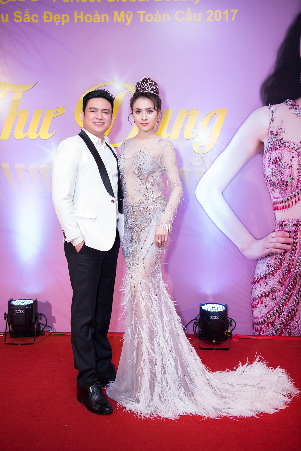 Dường như chiếc váy được “đo ni đóng giày” cho Nguyễn Thị Loan nên việc Thư Dung diện lại có vẻ như không mấy vừa vặn. Thiết kế quá rộng trong khi cơ thể nhỏ bé chính điều này không tạo được sự sang trọng, kiêu sa cho người mặc.