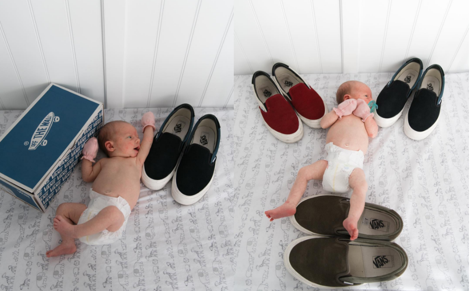 Em bé cuộn tròn bé xíu như những đôi giày đáng yêu sao chịu nổi.
