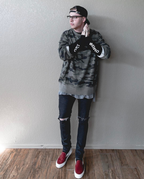Nhiều item cùng kết hợp cùng nhau trong phong cách của anh : hoodie kết hợp với quần jogger và quần ngố.