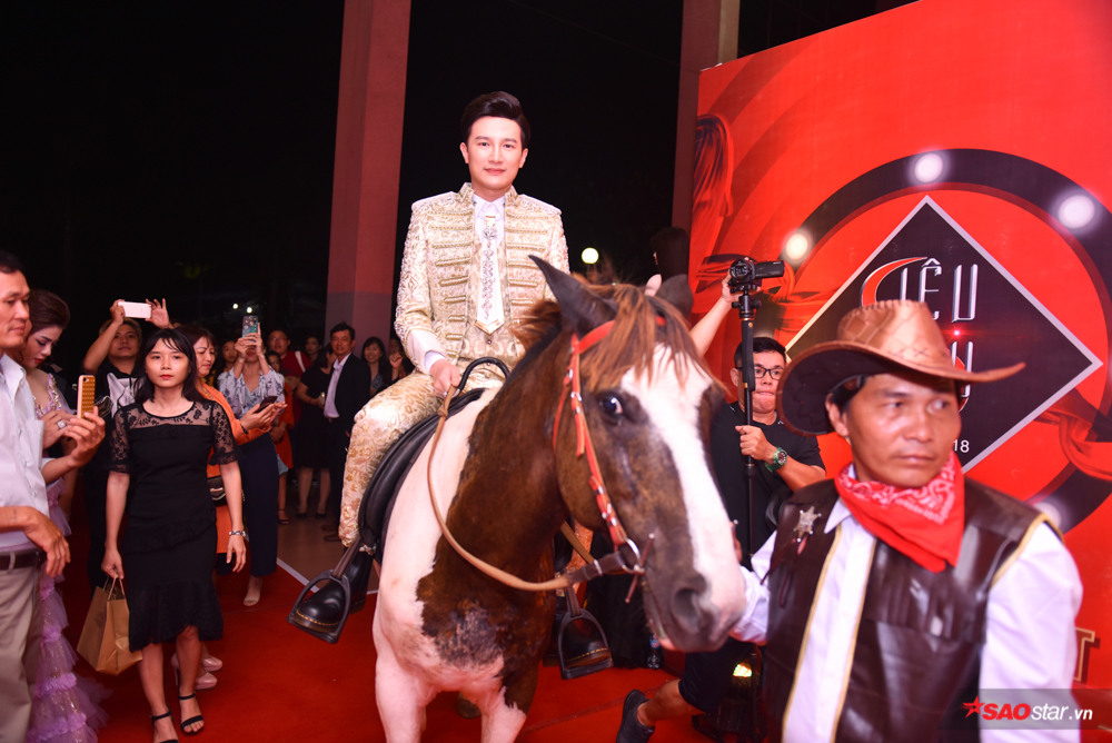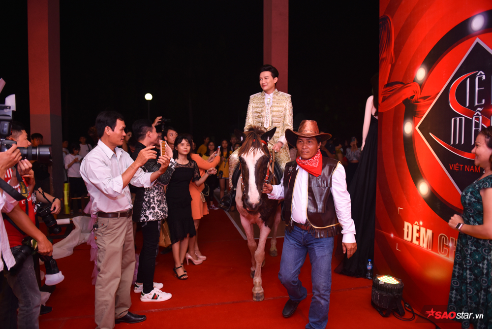 Ngay lúc này, trên thảm đỏ Siêu mẫu Việt Nam 2018 đang có rất đông celeb, Dược sĩ Tiến - một trong những vị giám khảm của chương trình đã có mặt. Anh hóa thân thành “bạch mã hoàng tử” cưỡi ngựa cực kỳ ấn tượng.