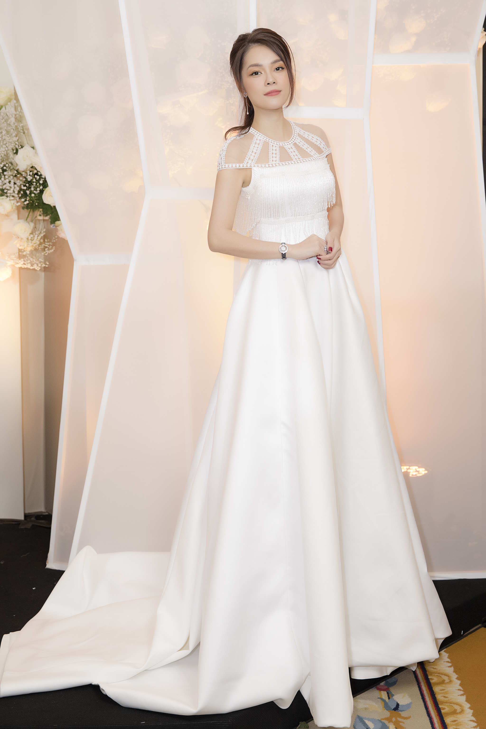 Mới đây, Dương Cẩm Lynh xuất hiện nổi bật tại một sự kiện về làm đẹp ở Thành Phố Hồ Chí Minh. 'Bà mẹ một con' gây chú ý bởi phong cách thời trang hoàn toàn mới lạ. Không giống những lúc tham gia các sự kiện trước đây, lần này Dương Cẩm Lynh quyết định chọn lựa chọn đầm cưới trắng thanh lịch, với phần vai được thiết kế đầy ấn tượng.