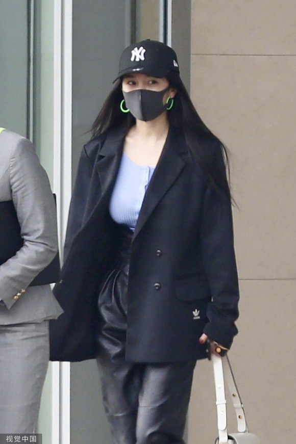 Mới nhất, khi cô diện set đồ cá tính khi mix áo croptop cùng quần da ôm lưng cao khoác Blazer cùng phụ kiện túi xách Gucci và mũ lưỡi trai “chất lừ” thu hút sự chú ý của fans