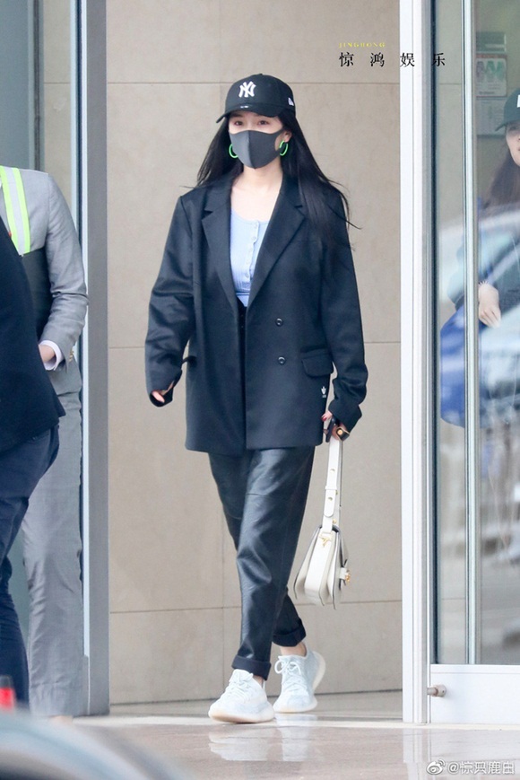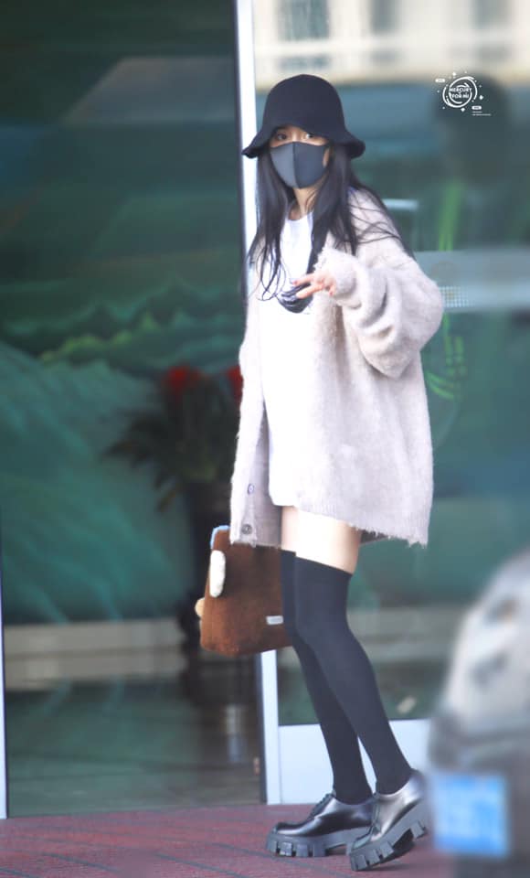 Dương Mịch diện mốt giấu quần để lộ đôi chân nõn nà khi đến sân bay vài ngày trước, có thể thấy chiếc túi xách mà cô sử dụng có hình gấu vô cùng đáng yêu.