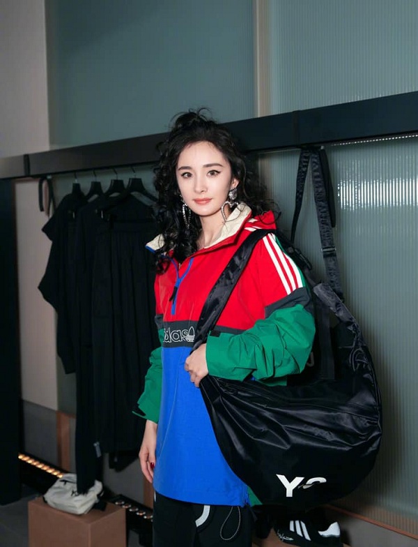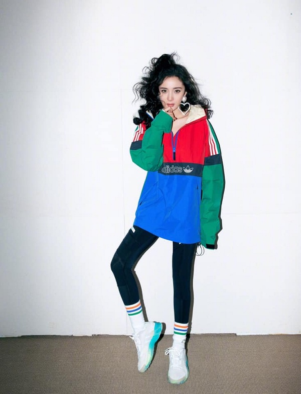 Tại sự kiện của một thương hiệu thể thao, Dương Mịch chiếm hết spotlight với set đồ thể thao trẻ trung áo hoodie rực rỡ sắc màu cùng quần đen ôm mix cùng giày sneakers với đôi vớ 7 sắc cầu vồng.