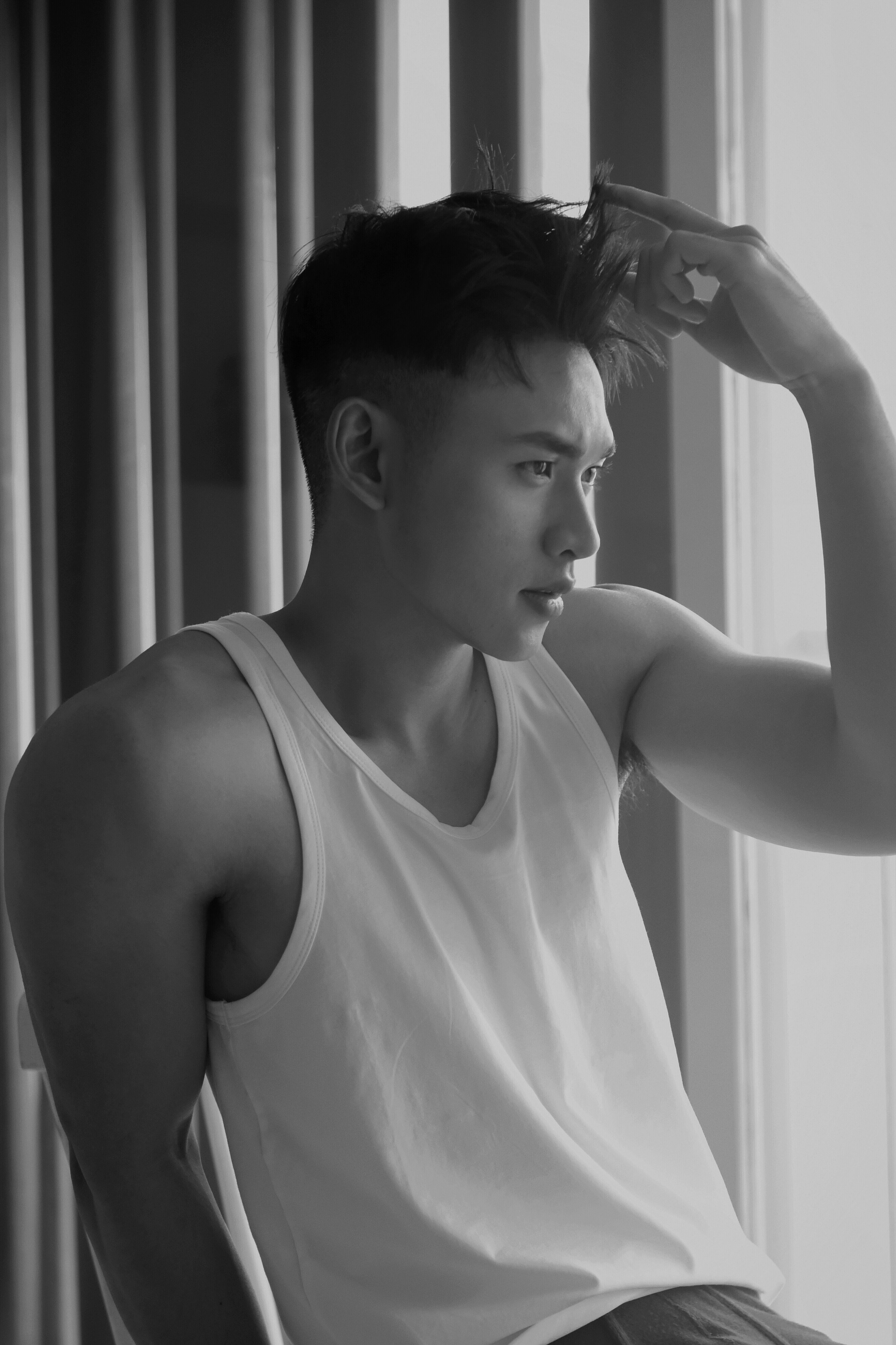 Trong bộ hình mới, Dương Minh Tuấn tung loạt hình nóng bỏng khoe cơ bắp cuồn cuộn khiến tim fan bấn loạn. Dù có thế mạnh là về thời trang với gu thẩm mỹ tốt, xứng danh với fashionista nhưng trong bộ hình mới, anh chàng muốn đẩy mạnh hơn về biểu cảm gương mặt, thần thái cuốn hút.
