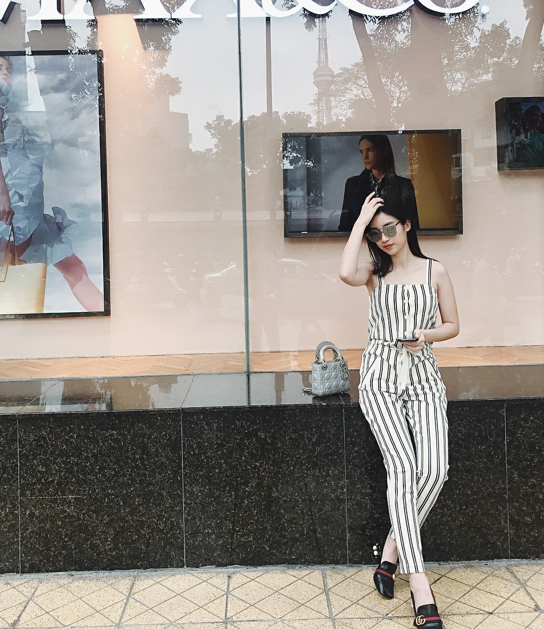 Nếu Hương Giang Idol yêu thích diện túi Dior to bản, thì Hoa hậu Đỗ Mỹ Linh lựa chọn size nhỏ hơn cho outfit của mình. Cô nàng còn chi mạnh tay cho đôi loafer Gucci sang chảnh.