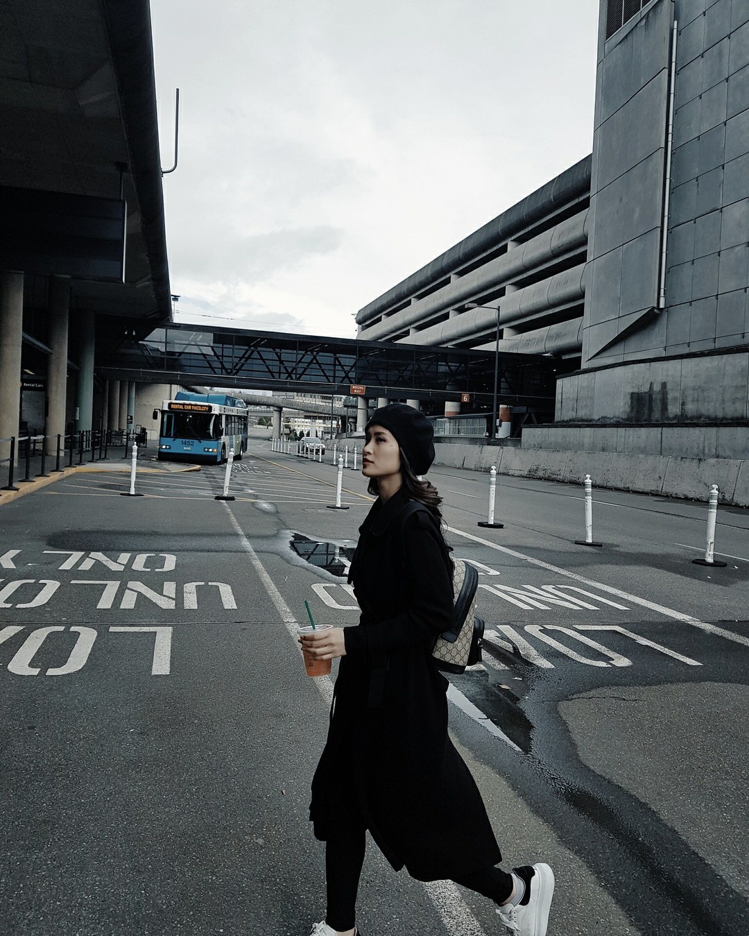 Có lẽ là bất kì một sao Việt nào cũng bị “ám ảnh” cái tên Gucci cho tủ đồ của mình. Đông Nhi diện cả một cây đen nhưng với balo của Gucci khiến cho street style của nữ ca sĩ thêm phần đẳng cấp.