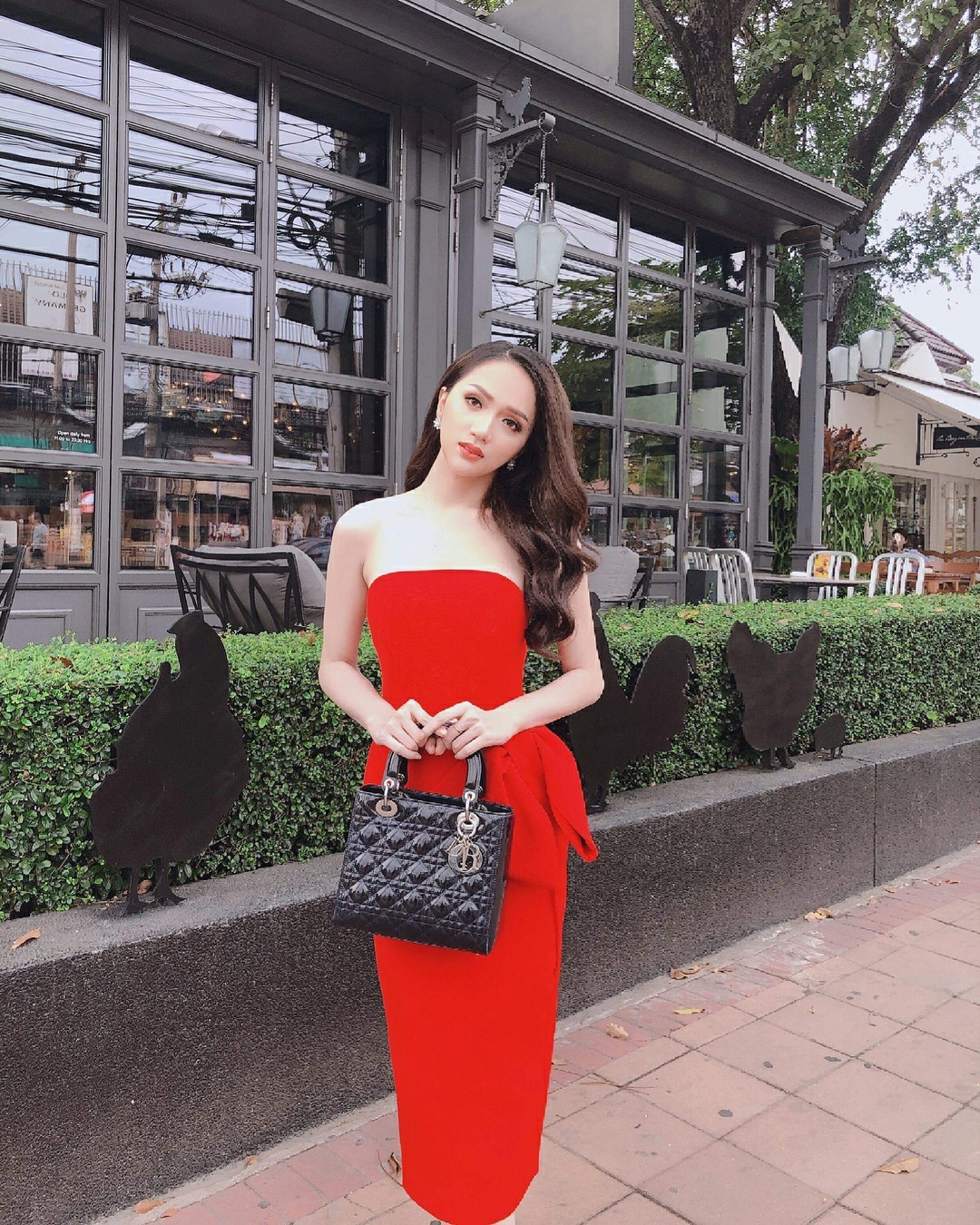 Hương Giang Idol với đầm đỏ đơn sắc cùng túi xách Dior sang chảnh khiến cô “nổi bần bật” dù không quá cầu kì. Với cách make up ngọt ngào khiến cho mỹ nhân khoe trọn vẹn sự rạng rỡ của mình trên đất bạn.