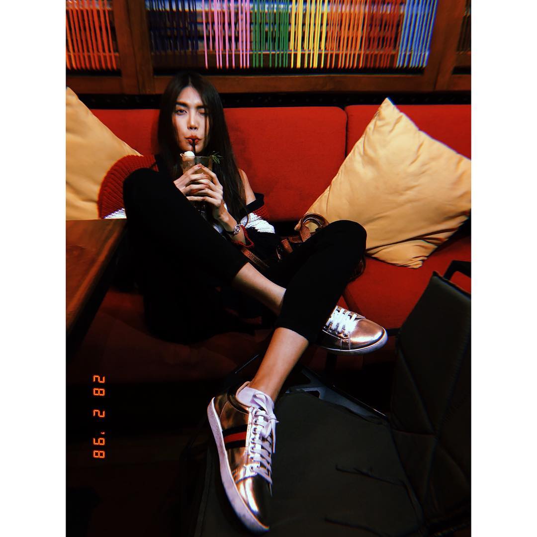 Lan Khoe khoe vóc dáng cò hương đáng ngưỡng mộ bên set đồ năng động. Đôi giày đình đám của nhà mốt Gucci có lẽ là một trong những item khiến nàng mẫu yêu thích nhất.