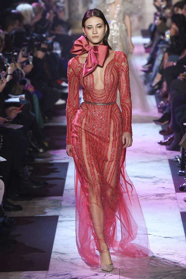Bên cạnh đó, những chi tiết, điểm nhấn nơ cài bản to cũng được Elie Saab trưng dụng.