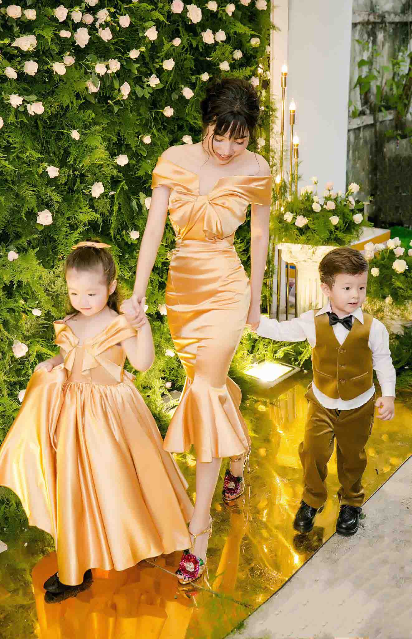 3 mẹ con nhà Elly Trần nổi bật và sang trọng với trang phục đồng điệu.