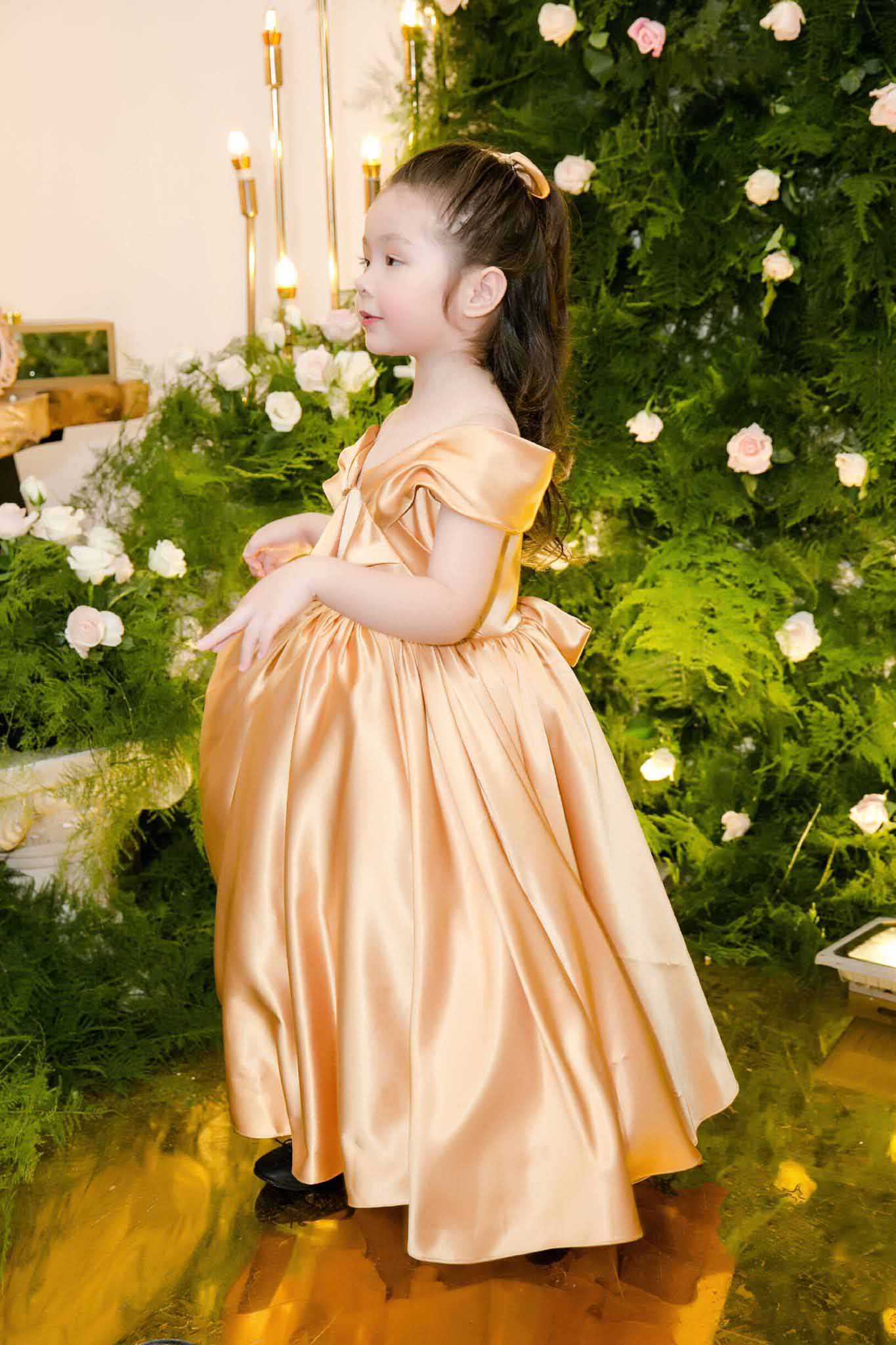 Nữ diễn viên quyết định chọn tông màu gold cho bữa tiệc sinh nhật thêm lung linh, ấm cúng.
