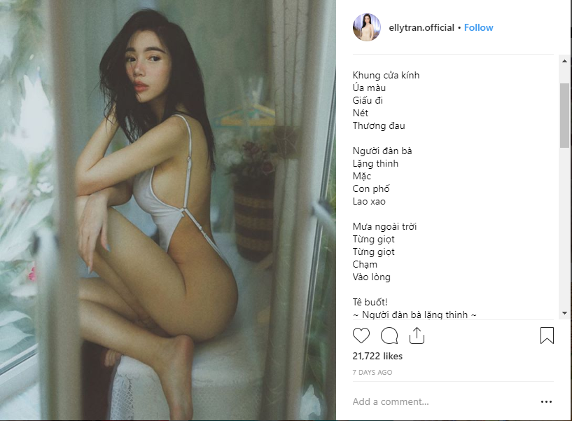 Elly Trần được biết đến từ những bức ảnh gợi cảm, khoe thân táo bạo mà cô đăng tải trên trang cá nhân. Những bức hình đó được cộng đồng mạng chia sẻ với tốc độ chóng mặt càng khiến nhiều người biết đến cô.