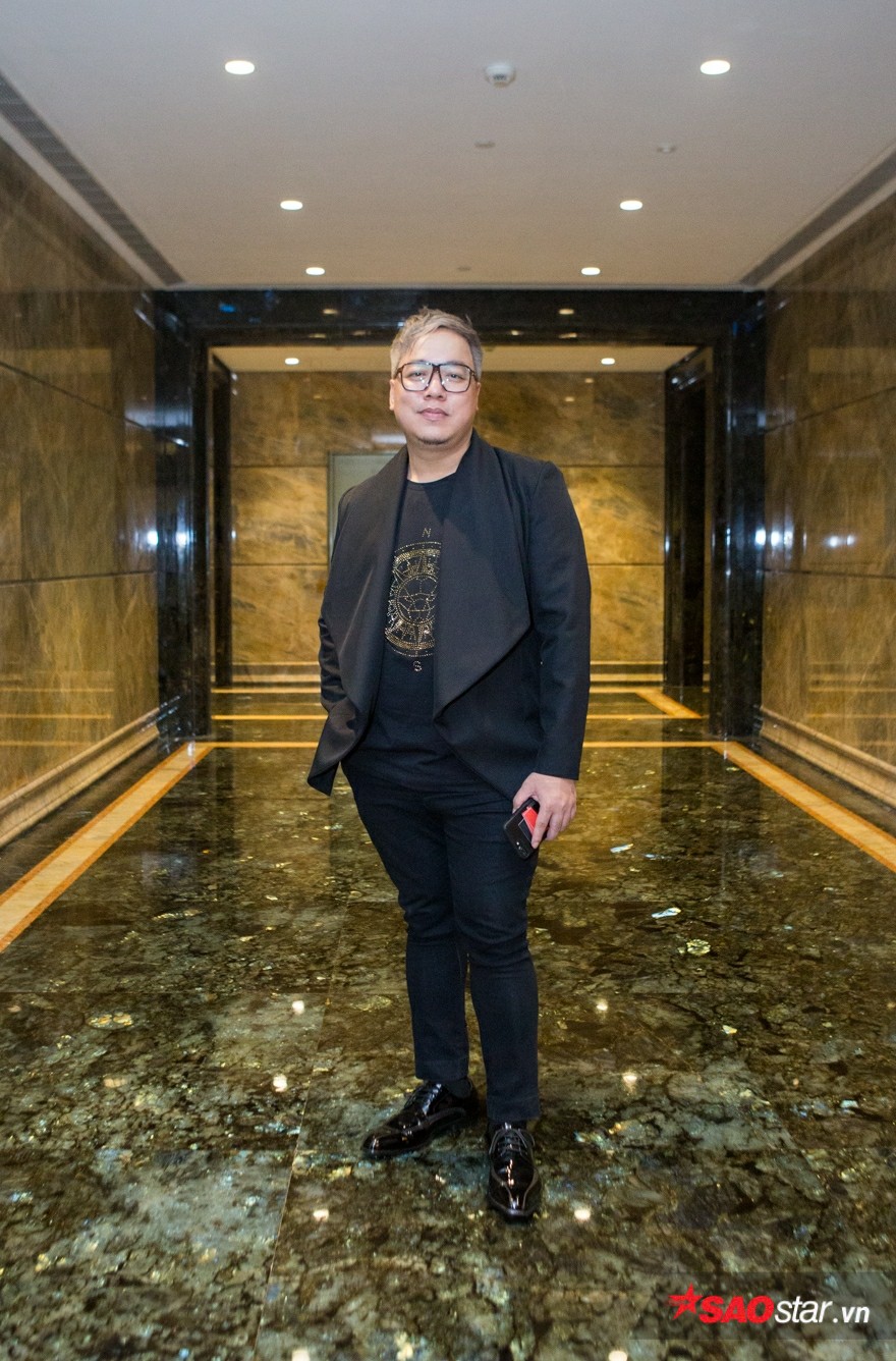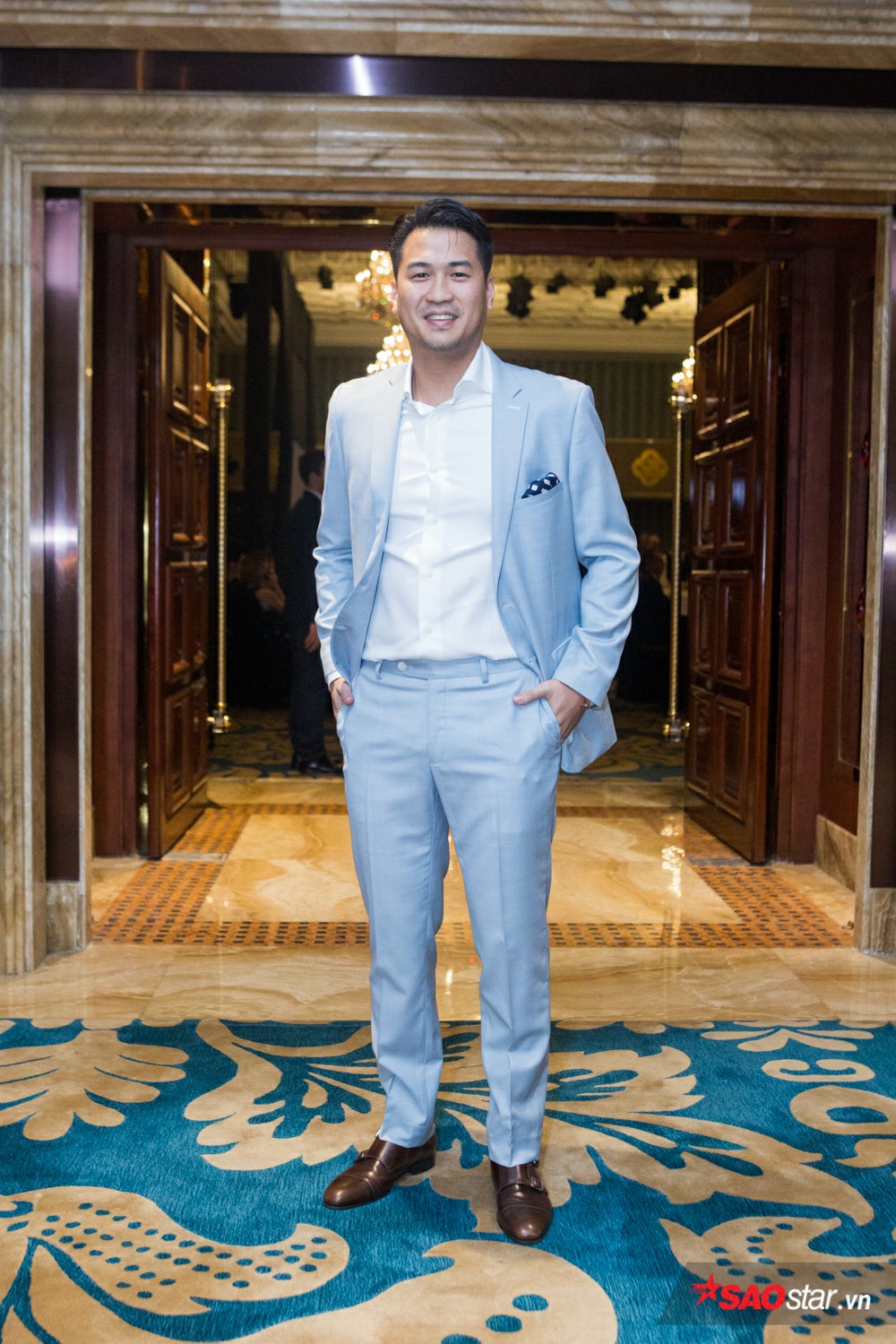 Em chồng Hà Tăng - Phillip Nguyễn ăn diện lịch lãm đến xem thời trang. Anh chọn cho mình cây suits màu xanh pastel nhẹ nhàng, tạo cảm giác trẻ trung.