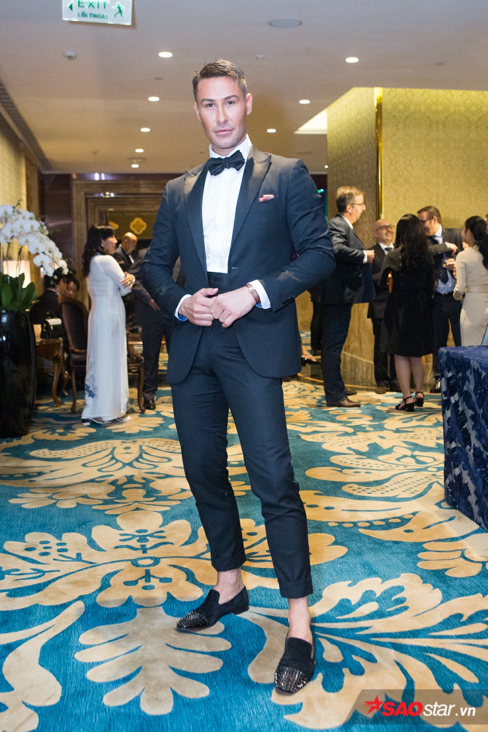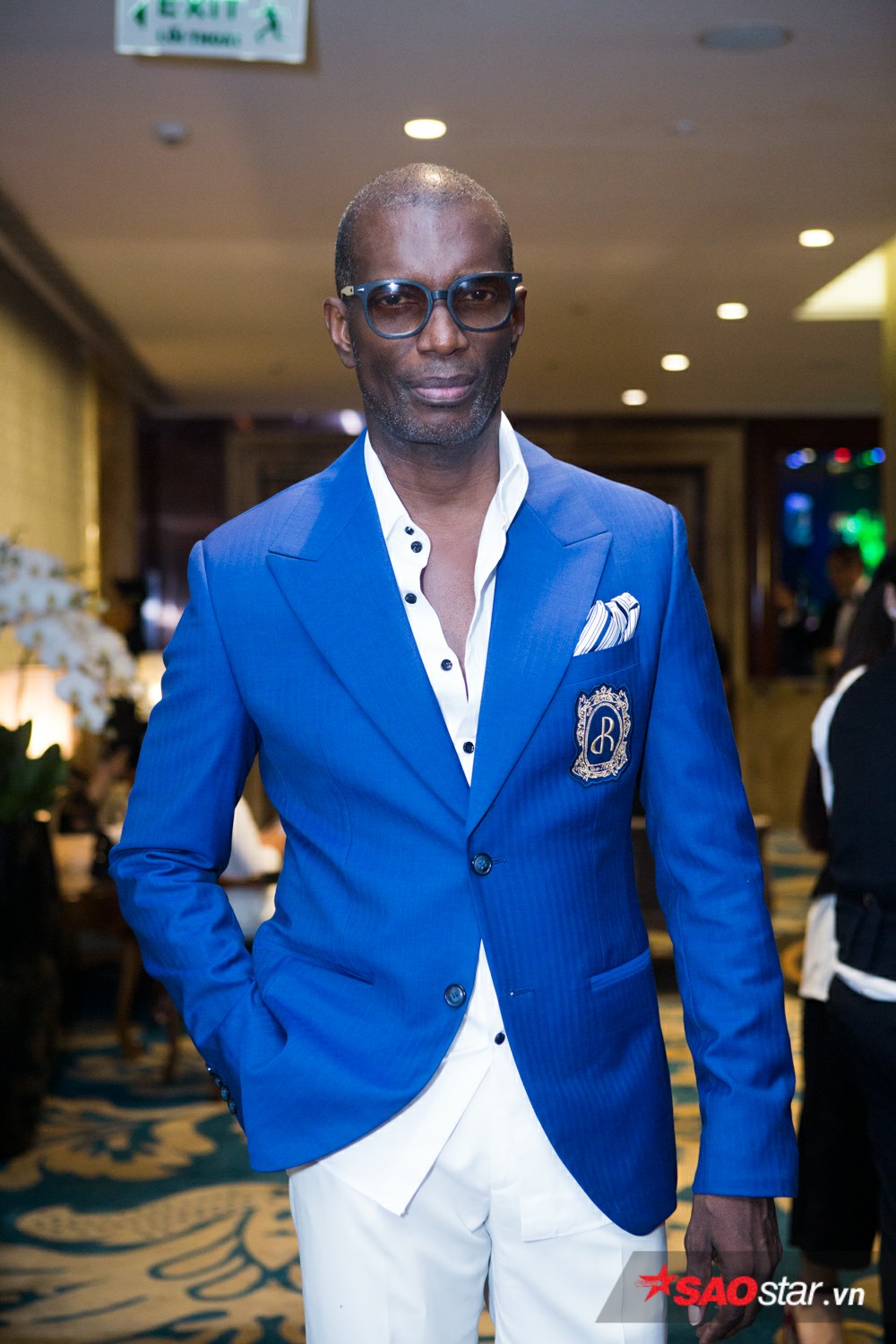 Cùng diện vest như nhiều khách mời khác, nhưng với cách phối cùng quần và băng nịt đã tạo nên vẻ ngoài mới mẻ cho chuyên gia catwalk - Adam Williams.