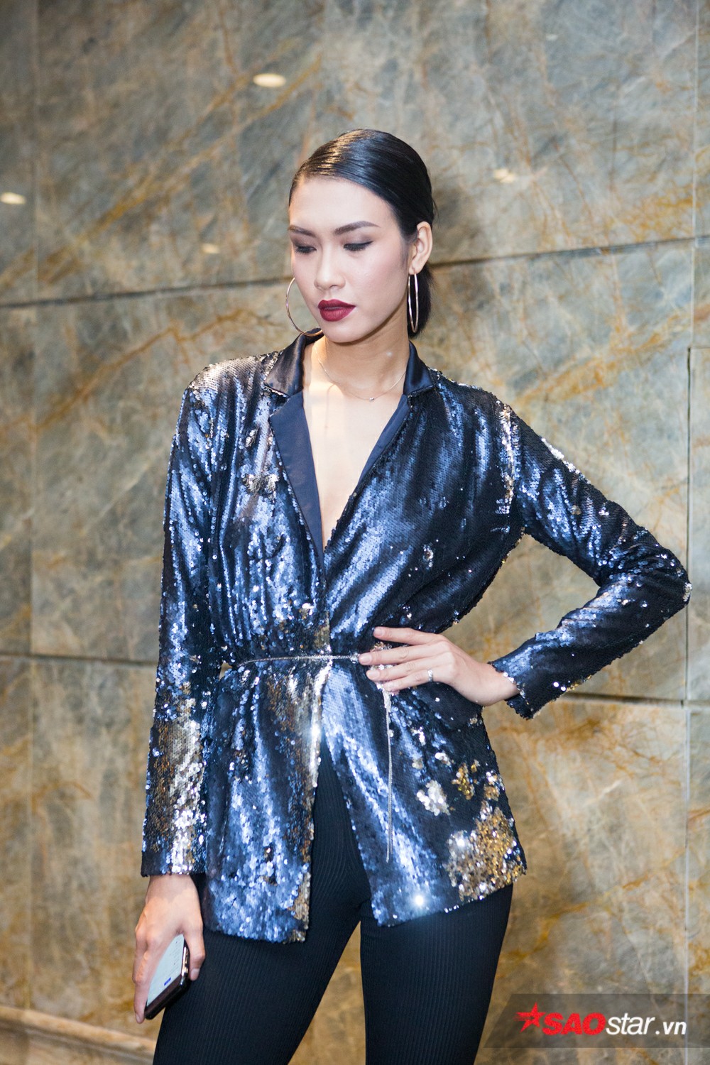 Diện áo vest sequin theo xu hướng không nội y cùng quần tây ống lỡ, Nguyễn Oanh Next Top nhận được nhiều lời khen về vẻ ngoài sắc sảo, ấn tượng.