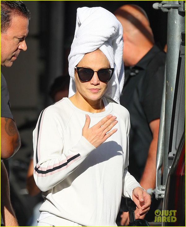 Jennifer Lopez mặt mộc cùng thời trang đồ bộ quấn khăn trên đầu tự tin ra phố