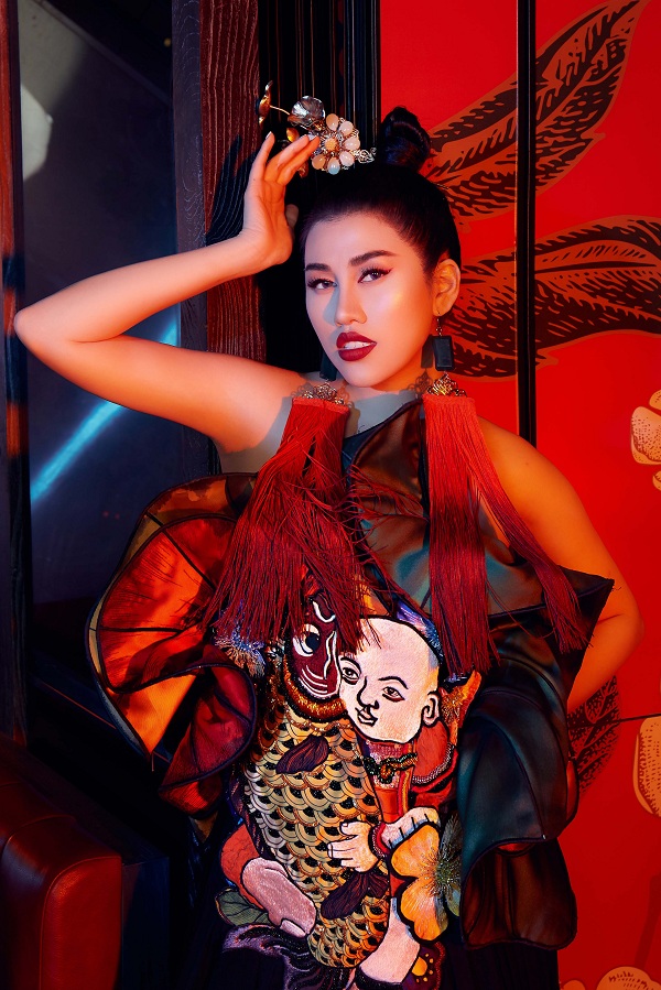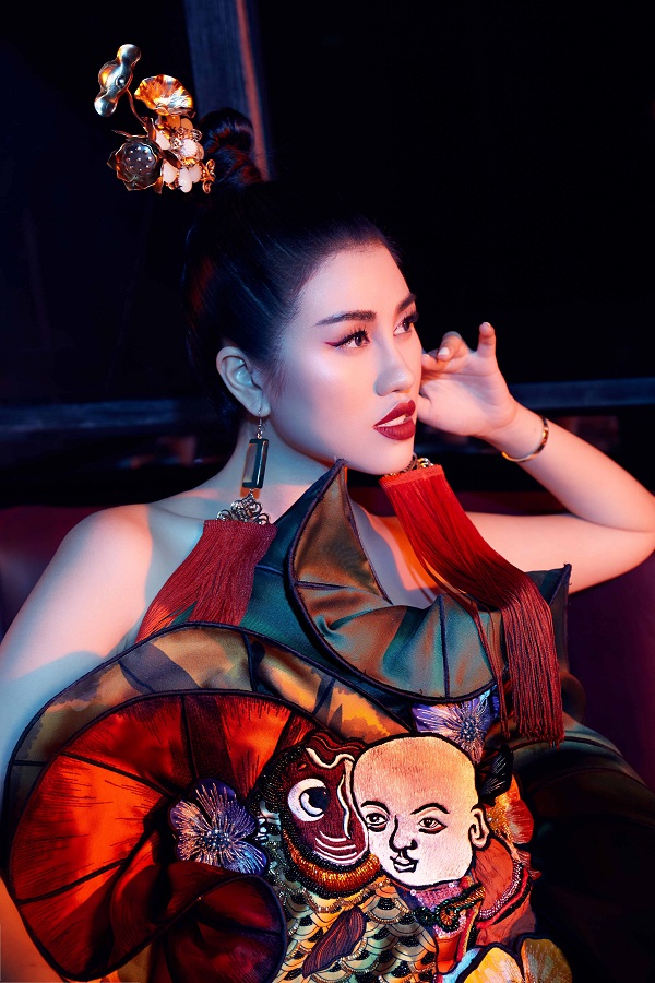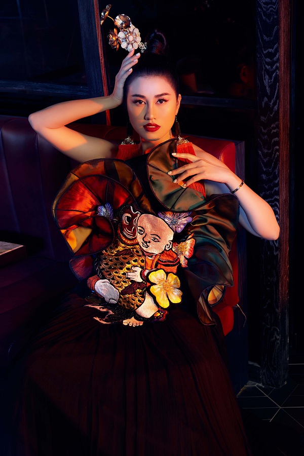 Nhân dịp ngày lễ Tình nhân 14/2 năm nay, trong những bộ trang phục độc lạ mang hơi hướng ý tưởng thiết kế từ những hình ảnh quen thuộc như hoa sen, lá sen, tranh đông hồ,… hoa hậu Emily Hồng Nhung cùng ekip bất ngờ tung bộ ảnh sáng tạo đầy mê hoặc đến hút hồn dù không có những cánh hoa hồng hay chú gấu bông xinh xắn