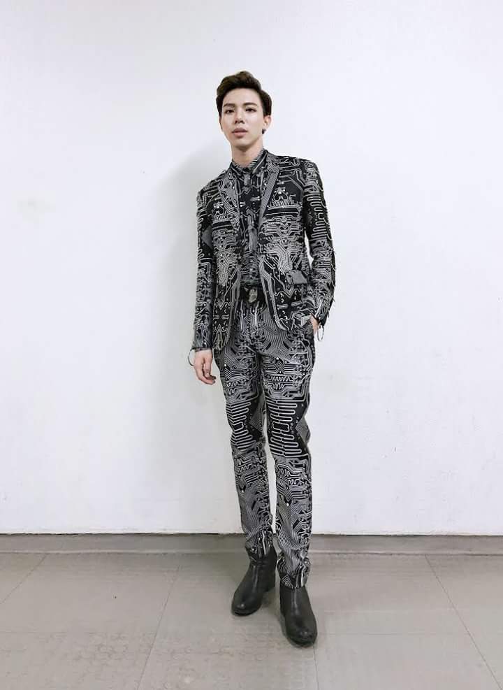 Giọng ca sinh năm 1997 còn bổ sung cho bộ sưu tập vest của mình với thiết kế họa tiết đám mây li ti trên nền đen.