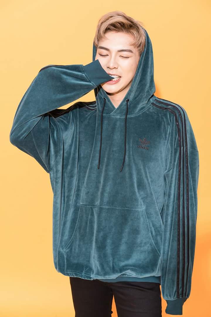 Đôi khi lại tinh nghịch với hoodie xanh chất liệu nhung của Adidas.