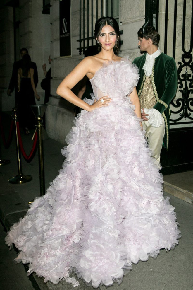 Trong khi đó người mẫu hàng đầu Ấn Độ Sonam Kapoor cũng diện một chiếc váy tương tự Jessica nhưng nhìn nàng mẫu Ấn Độ đẹp hơn rất nhiều.