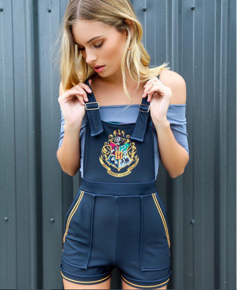 Logo trường phù thủy Hogwarts đã đi vào huyền thoại với bốn biểu tượng đại diện cho bốn nhà Gryffindor, Hufflepuff, Ravenclaw và Slytherin. Black Milk Clothing đã đưa logo này lên item quần yếm đậm chất thể thao, năng động. Kiểu dáng bắt kịp xu hướng hiện đại, trẻ trung là điểm cộng của thiết kế này cực thích hợp cho các cô nàng xây dựng phong cách streetstyle.