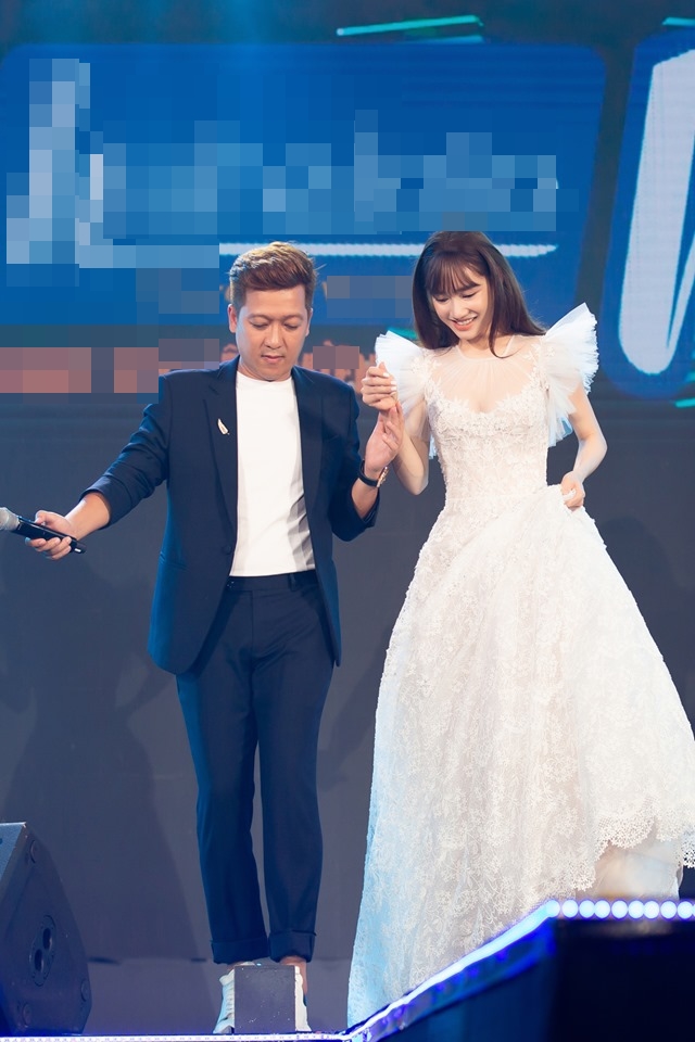 Biết vợ mang cao gót, di chuyển khó khăn nên Trường Giang đã nắm tay, dìu người đẹp di chuyển từng bước.