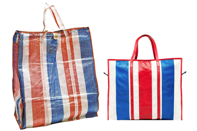 Thương hiệu Tây Ban Nha - Balenciaga - từng trình làng loạt túi tote họa tiết kẻ trong BST thu đông 2016. Có giá bán từ 1.750 USD trở lên nhưng dòng túi hàng hiệu này bị đem ra so sánh với túi dứa đựng hàng của các tiểu thương ở chợ Việt.