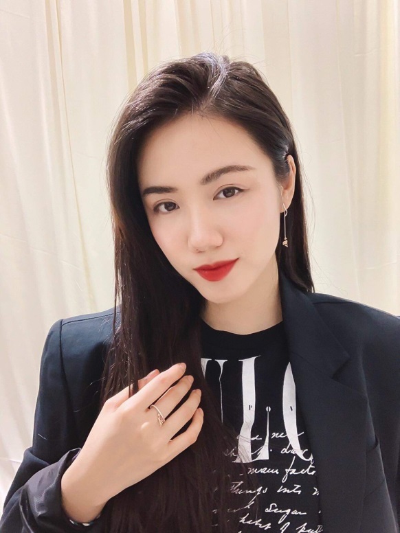 Không hẹn mà gặp, Phương Ly cũng lựa chọn hoa tai thiết kế sợi mảnh và nhẫn hồng hạc như Tú Hảo, Bảo Anh để hoàn thiện bộ cánh và thêm “điểm cộng” lấp lánh, sinh động cho diện mạo của mình.