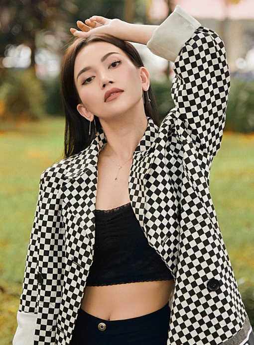 Với phong cách đa dạng và khả năng biến hóa khôn lường của mình, Sĩ Thanh đã chứng minh diện đồ đen vẫn có thể mix thêm họa tiết đơn sắc để bộ cánh trở nên ấn tượng, nổi bật. Diện bratop và quần hot pants gắn liền với phong cách gợi cảm quen thuộc, Sĩ Thanh khéo léo chọn blazer họa tiết caro bắt mắt để tạo chất riêng cho bộ cánh Black Friday của mình.