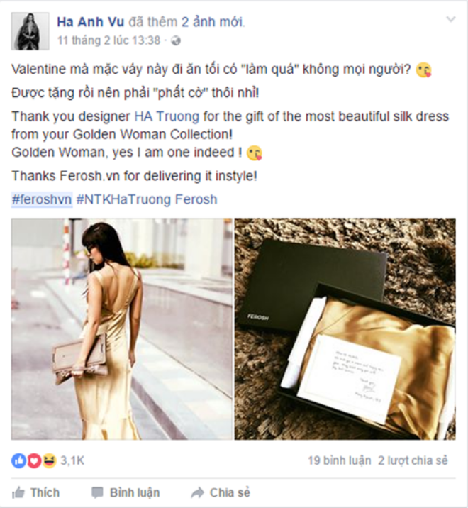 Món quà nhỏ mà NTK Hà Trương dành tặng Hà Anh được Ferosh gửi tới theo cách tinh tế và chu đáo nhất. Siêu mẫu yêu thích sự tinh tế trong những điều nhỏ nhất từ cách chăm sóc khách hàng của Ferosh.