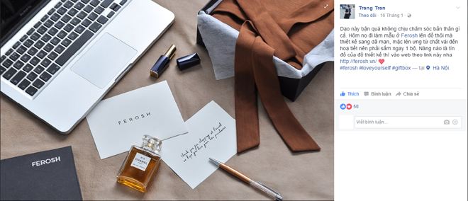 Hotgirl Trang Trần thể hiện tình yêu với các sản phẩm tại Ferosh từ “cái nhìn đầu tiên”.