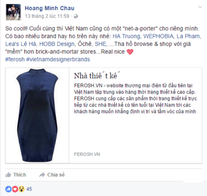 Bên cạnh sao và người nổi tiếng thì rất nhiều tín đồ thời trang khác cũng đã lựa chọn đặt mua online các sản phẩm tại Ferosh.