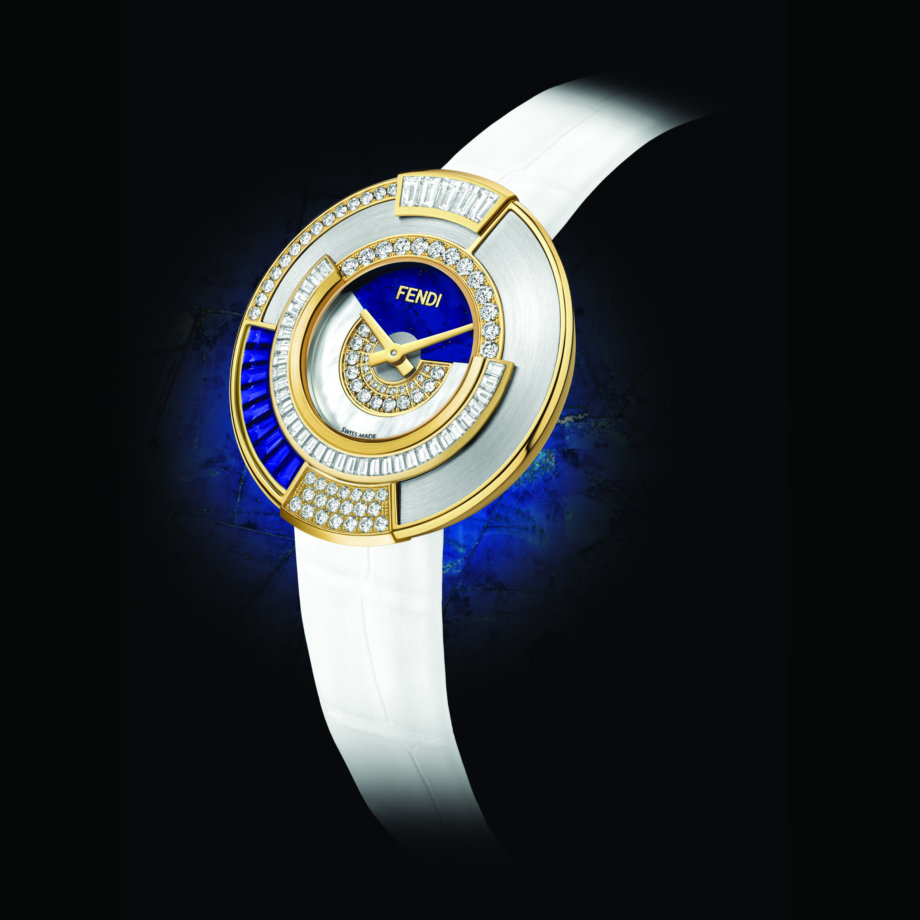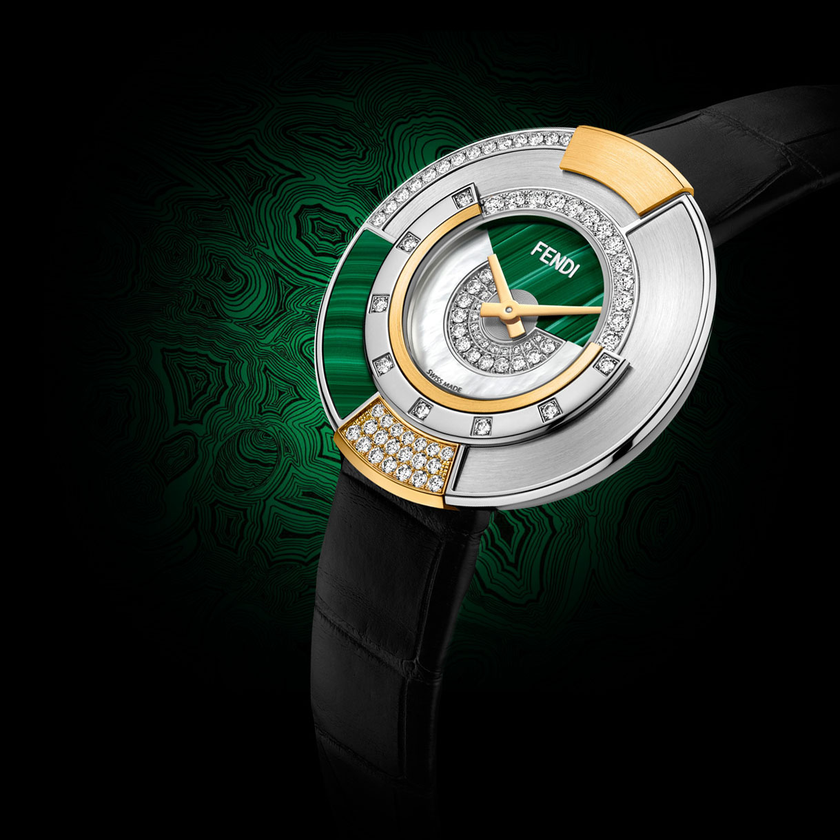 Vừa mới đây Fendi cho ra mắt thiết kế đồng hồ hiệu ứng 3D mang cái tên rất lạ “Policromia”. “Poli” nghĩa là “đa dạng”, “cromia” là “màu sắc”. Mẫu đồng hồ lấy những ô cửa Colosseum làm cảm hứng, kết cấu xếp lớp bất đối xứng phá cách, đường nét mạnh mẽ dứt khoát, chất liệu cao cấp xử lý tinh xảo gồm kim cương, đá malachite, lapiz lazuli, mother-of-pearl… Tất cả tạo nên một tác phẩm nghệ thuật đương đại thay vì đồng hồ thời trang thông thường.
