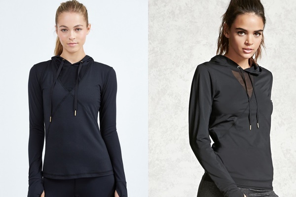 Set đồ thể thao của Bandier (bên trái) bị Forever (bên phải) copy y chang với mẫu áo thể thao hoodie.