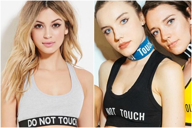 Forever 21 (hình bên trái) copy ý tưởng của Charles Smith II (hình bên phải) khi cùng sử dụng dòng chữ “not touch”.