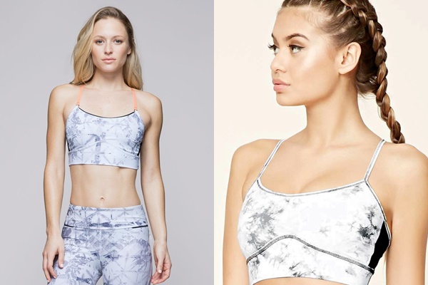 Tương tự với mẫu áo thể thao của Bandier bị thương hiệu Forever 21 đạo nhái với phom dáng lẫn thiết kế với hai vạt đen bên vai y chang.