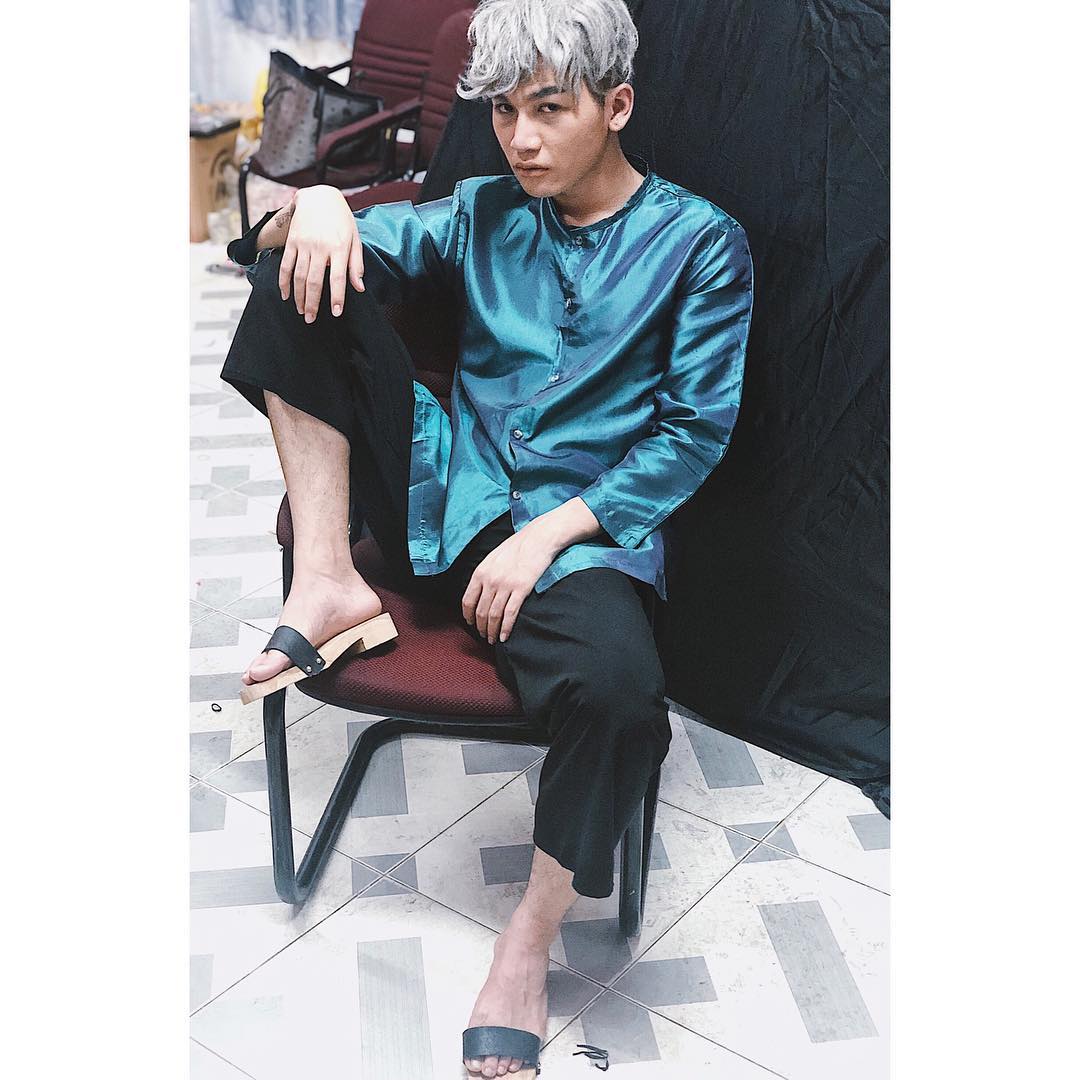 Áo bà ba, guốc mộc… nhưng với mái tóc trắng cùng dáng ngồi này, “bác nông dân” Ali Hoàng Dương trông có điển trai, chất ngầu ngời ngời quá không?