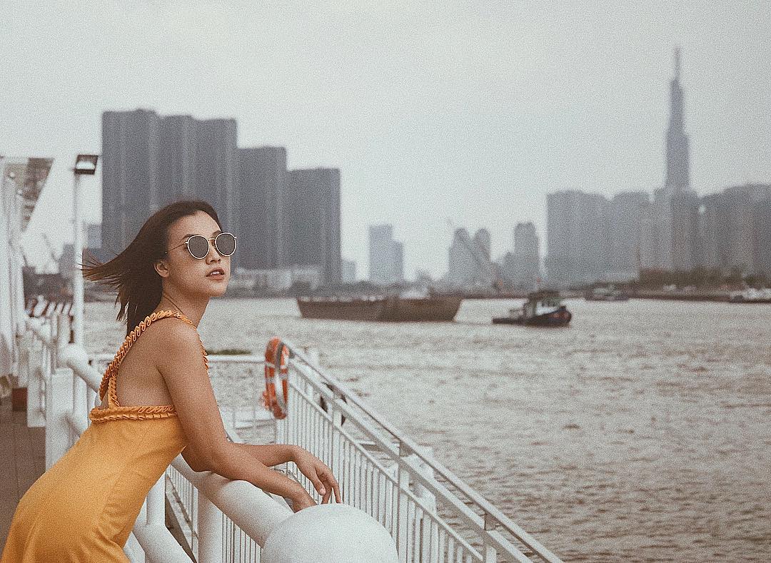 Váy vàng nhẹ nhàng phối cùng kính mát đen, “chị đại” Hoàng Oanh quả là một người có gu ăn mặc ổn định.