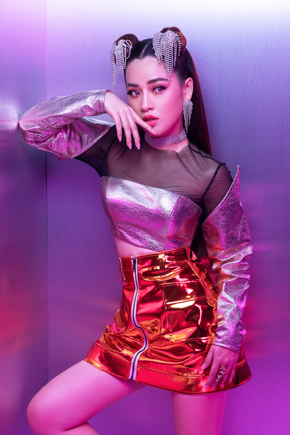 Diện trang phục với chất liệu chủ đạo là da ánh kim ôm sát cơ thể kết hợp cùng boot cao qua gối cùng tóc búi… Puka khoe vẻ mạnh mẽ với những cú đánh hông cực gắt như những nữ chiến binh thực thụ.