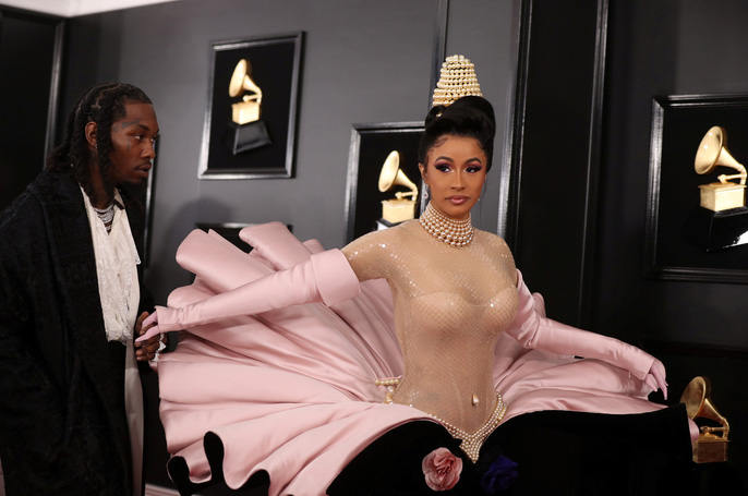 Cardi B diện đầm thuộc bộ sưu tập của nhà thiết kế Thierry Mugler năm 1995. Mặc dù khoảng cách hơn 2 thập kỷ, bộ đầm vẫn rất hợp với Cardi B và gây sự chú ý.